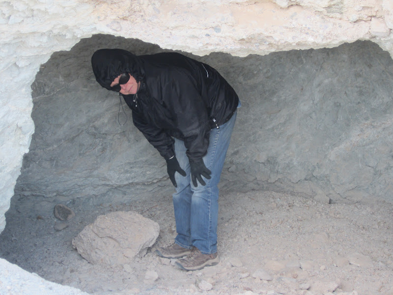 We found another hole where someone had dug. It was solid rock inside. As you can see we were bundled up. It wasn't that cold but on the Ranger with no windshield it does get cold.